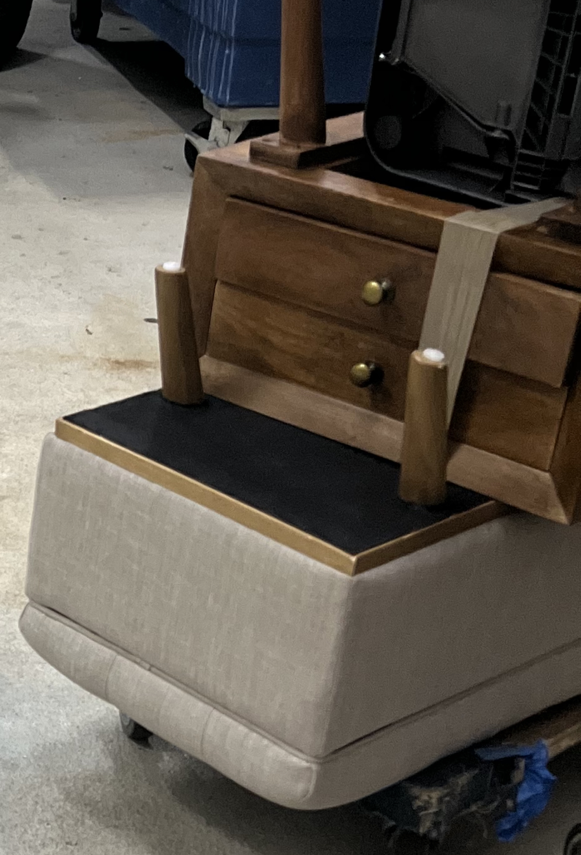 When the movers started unpacking things from their truck, I noticed they had taped some of our furniture with no blankets. In the photos you can see our nightstand and ottoman have no covers. When the furniture had been removed from our apartment the tape was not put on, so I’m assuming they taped these things along with our other belongings once we were not in eyesight. If I had known, I would have never allowed them to directly tape on top of the paint. When everything was moved into the VA apartment, they proceeded to rip the tape off aggressively and as you would imagine, ripped off paint on some of our furniture.