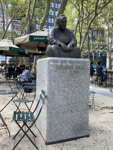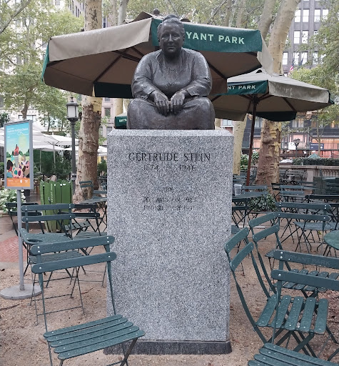 Gertrude Stein is an outdoor bronze sculpture of Gertrude Stein, located at Bryant Park in Manhattan, New York. The casting was installed in 1992 and is based on a model created by Jo Davidson in Paris in 1923.