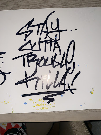 My son has never been in trouble, never done a drug, and comes from a loving, structured home. He simply loves graffiti art and was excited to learn more. That comment broke something in him. I tried so hard to shield him from how Leaf treated us throughout the workshop, but the message on the back of that canvas said it all. He wanted to know why was he being singled out and referred to as a killer?