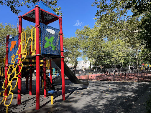 Good. A full city block devoted to outdoor space. It's comprised of a statue to neighborhood WWI vets toward the north side, then a playground comrpised of two sets of swings- one for little kids with the harness seats and the other for big kids with the soft rubbery, plastic strap seats. There's also two areas of the playground. When you enter, immediately in front there's an open space with benches surrounding against the fence as well as abutting. This is the water play area in the summer. There's stone shapes that spray water. Immediately across are both sets of swings. Little kids' set to the left, big kids' to the right. To the left hand side there's a gated area for younger kids to play in. Its nice sized. Not one of those tiny little structures for toddlers only. This is good through preK or K its got good sized slides as well as smaller ones, but the gated area provides a barrier and keeps the bigger kids from coming in. The bigger kids have a rock wall, military-style bars (like w ladder laid horizontally) and a play structure as well, which is taller than the one on the other side. There's a red stone building which houses a boys bathroom and a girls bathroom, which isn't spotless but isn't the worst I've seen, either. There's also benches, to the right upon entering, with stone tables for playing chess or checkers or dominoes or cards. In practice, though, parents use them for a feeding area. Separated from the playground, but sharing a chainlink fence, is a full, two basket, basketball court. Behind that is a handball court with space for two groups to play at once, one on either side. These must be enteted from the street. If you're in the playground and want to play basketball, you must exit to the sidewalk and reenter. Beyond this is wide open space. Kids can, and do, ride bikes here and practice soccer drills, though its concrete, there's no grass. Theres a baseball diamond and a half court basket all the way at the end...
