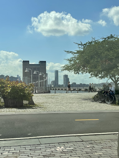 The spot itself isn’t exactly a tourist attraction, but it’s one of those places you stumble upon and go, “Damn, that’s actually pretty awesome.” Especially at sunset, when the light hits the brick and the skyline reflects off the Hudson — there’s a strange beauty to it.