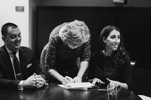 On our wedding day, she arrived early and was nothing but warm and friendly…she came to sit with me and just chat while I was waiting in another room for the ceremony to begin and she was a very calming presence…I was told afterwards that before she came to see me she spoke to my husband and two sons, as well as greeted guests as they came in. When we began, it was smooth from beginning to end – I felt like she wasn’t just reading the passages we chose, but really speaking them to us and our guests in a very warm and friendly way. When she proclaimed us husband and wife, she seemed truly happy for us. Afterwards she had us sign the marriage license along with our maid of honor and best man as witnesses and then a couple of days later, emailed me a copy of it along with the text from our ceremony as a keepsake.