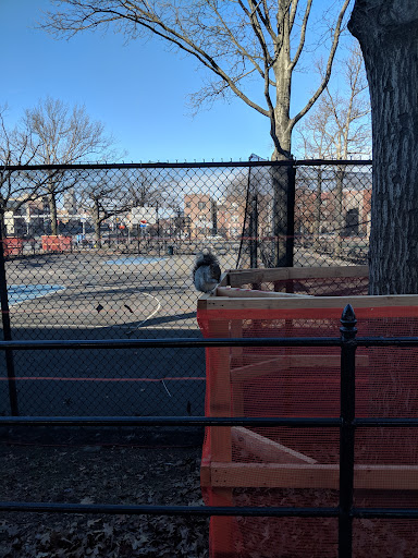 Big downside is it's next to the subway and a LOT of random people cut through to get to and from the subway. Not a particularly clean playground and sometimes vagrants hang out on the benches, but kids tend to like...