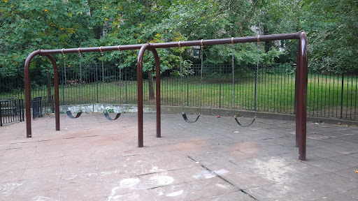 Perfect playground in the park. It has a gate and if you sit in the middle you can see the whole playground which is great if you come with more than one kid and different ages. There is a little kid section with baby swings, slides etc. There is a sandbox and also a sand boat(!). There are challenging climbing contraptions that are great for the older kids and also swings for big kids. Overall, a really nice playground to while away...