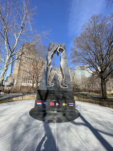 This monument in Battery Park north of Castle Clinton, honors military personnel who served in the Korean Conflict (1950โ1953). The memorial, dedicated in 1991, was designed by Welsh-born artist Mac Adams (b. 1943) and is notable as one of the first Korean War memorials erected in the United States.