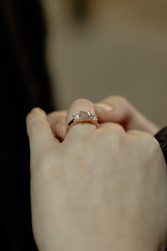 I wanted a rose gold ring with a salt and pepper diamond in the middle. On the sides of that, heirloom diamonds from our families. Caroline was an amazing collaborator on this the whole time. Offering advice, adjustments, and everything I didn’t know I needed. The ring is perfect.