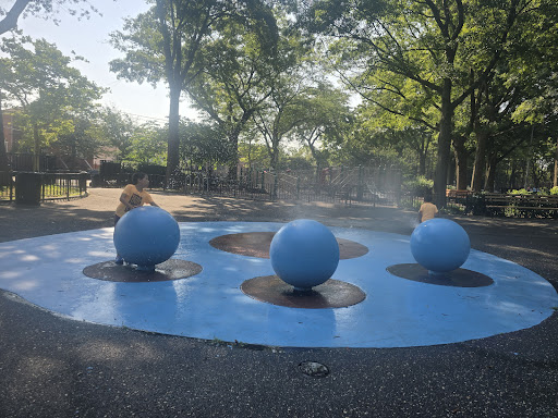 There are two playgrounds, one for toddlers and one for young kids. There are two swing sets as well. There is a long space in between with benches, sprinklers and a small public pool. It's mostly clean most of the time, and the park staff are generally friendly. The baseball field right next to the playgrounds multitasks as a dog park early in the morning and in the evening. The parking there is incredible 9 times out of 10. Definitely recommend a visit. As someone else mentioned though, some parents let their kids ride bicycles all over the playgrounds, including where the toddlers...