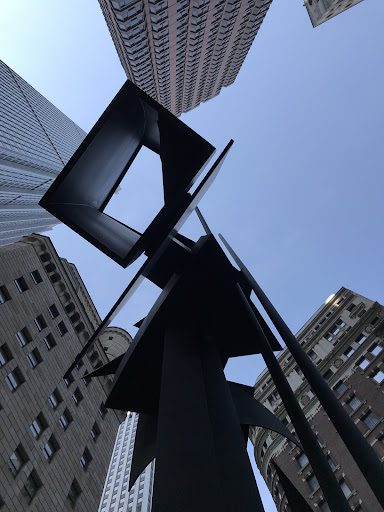 Louise Nevelson Plaza (formerly known as Legion Memorial Square), is a public art installation and park in Lower Manhattan, New York City, which includes an arrangement of large abstract sculptures designed by the American 20th-century female artist Louise Nevelson. Described as an "outdoor environment", the triangle-shaped plaza is bounded by Maiden Lane, Liberty Street and William Street, adjacent to the building of the Federal Reserve Bank of New York.