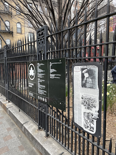 this small triangular "urban park" is in high traffic part of SoHo. a little bit of greenery pops up in patches in this outdoor space. benches are both in the interior and the exterior of the gated park. there' a huge CitiBike rack at the northern tip if you are part of the blue bike cult.