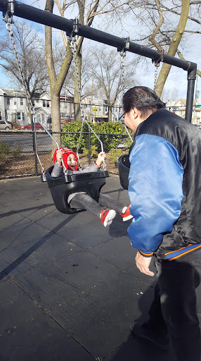 Love this place. It provide spacious place for kids playing, running , scooters , also have two slides. One is for small kids and the other is for big kids. And several swings for small kids , fountain spray for fun and to get a moisture fresh air ; big basketball area, tennis ball area , etc. many benches for relaxing and rest and sitting , bathrooms available , two drinking water fountains , available big trees to have enough shade for summer . So good and necessary and important for my kids...