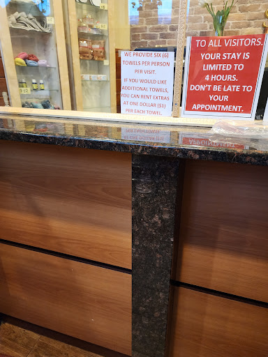 Customer appreciation and loyalty are practically nonexistent. The lockers are too little and not at all ergonomic. While the water dispensers appear to be designed for cold and hot water, they dispense only the former. Only six towels are allotted per paid entry. This was supposedly due to one dryer’s being out of order; although, for additional payment more towels can be obtained. Would it be a new dryer fund, or does the dryer repair itself remotely, once additional cash hits the register? The showers’ water pressure is randomly unstable. The time of visit is limited to four hours. This needs to be taken into account if ordering food or beverages, because waiting time is not excluded. Therefore, in order to finish eating or drinking, additional cost of $10 per hour is plenty likely. Bringing your own tea is no longer allowed, again per COVID restrictions, which incidentally, are in effect here selectively (e.g. hand sanitizers are nowhere to be seen). Of course, tea - a sizable pitcher of hot water with two generic teabags - is provided for $12 plus tax plus often imposed tip. Of course, the worst aspect is the floor personnel which is “led by example” by the owner. Their unprofessionalism and rudeness are truly remarkable. The only exception are the lady at the front desk and the gentleman maintaining the steam rooms. Regrettably, that is nowhere near enough to compensate for the aggravation of all other aspects.