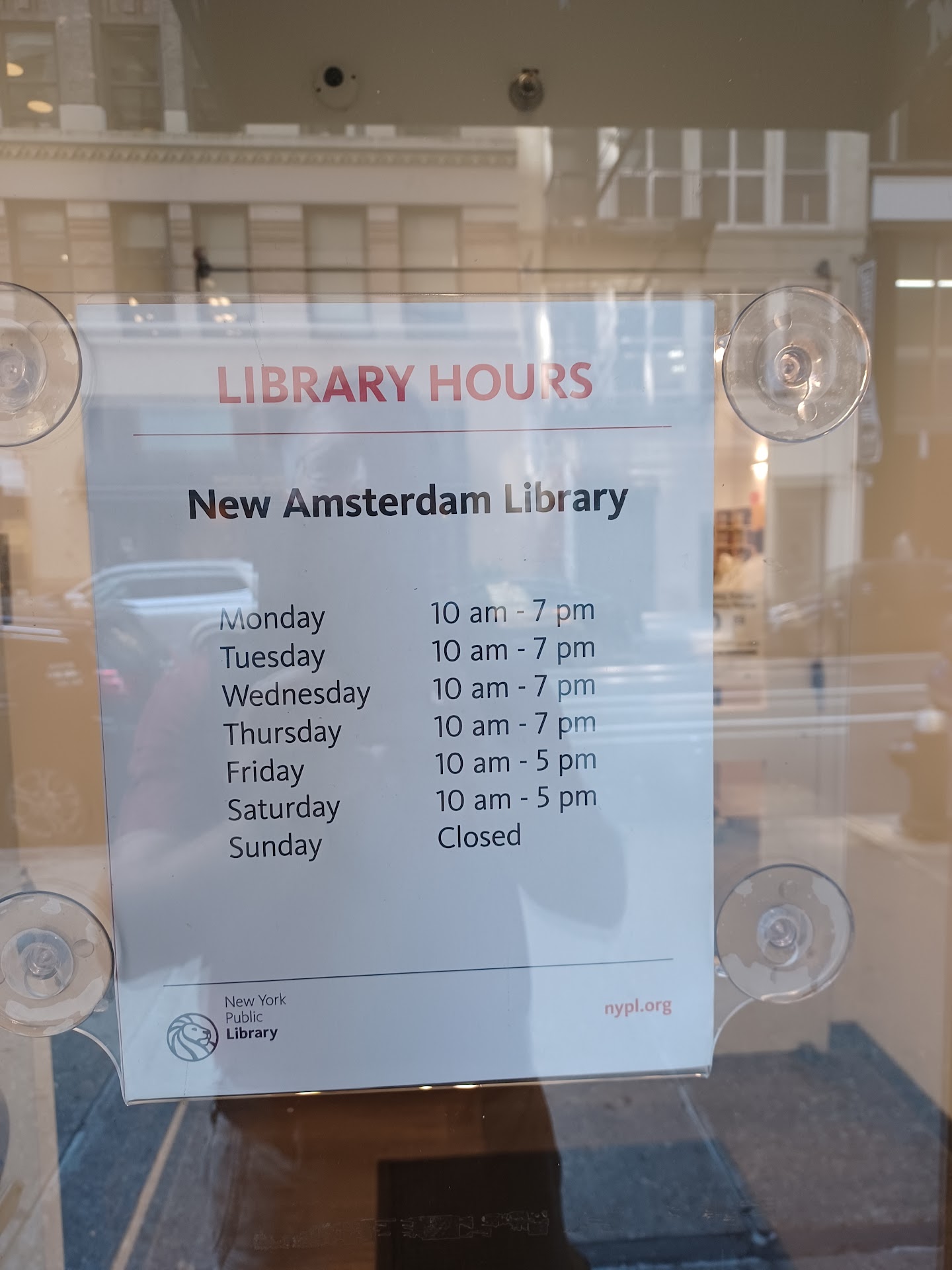 Read moreThe New Amsterdam Library is truly the friendliest, cleanest and happiest I’ve ever been in a library. A wonderful woman named Nia helped my girlfriend and I print out copies, get new library cards and tote bags! The warmest feelings on a 16 degrees day in the...