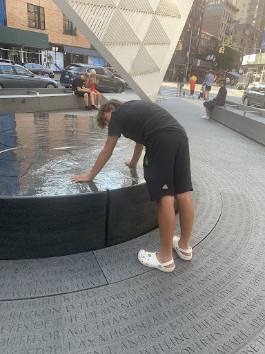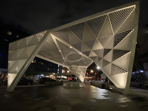 Read moreUnfortunately, in this very first week after opening, one of the pristine white metallic(?) diagonal girder-like structures is already filthy with what looks like muddy footprints of kids &/or dogs who climbed on it. Also, the ground tiles displaying circular rendition of wonderful Whitman poem at memorial are likewise smudged, blemished. Then we watched as typical, numb-to-clueless dog owner let his pet PISS on the low memorial curb wall on 12th st side...as 4 other equally self-consumed doggers ran around with their 2 expensive black French poodles on the grassy eastern section of park. There used to be NO DOGS ALLOWED signs, but... they're now already gone (??) So on-duty security guard could only watch helplessly, in vain.What happened to signs? Let alone to self-LESS civility?