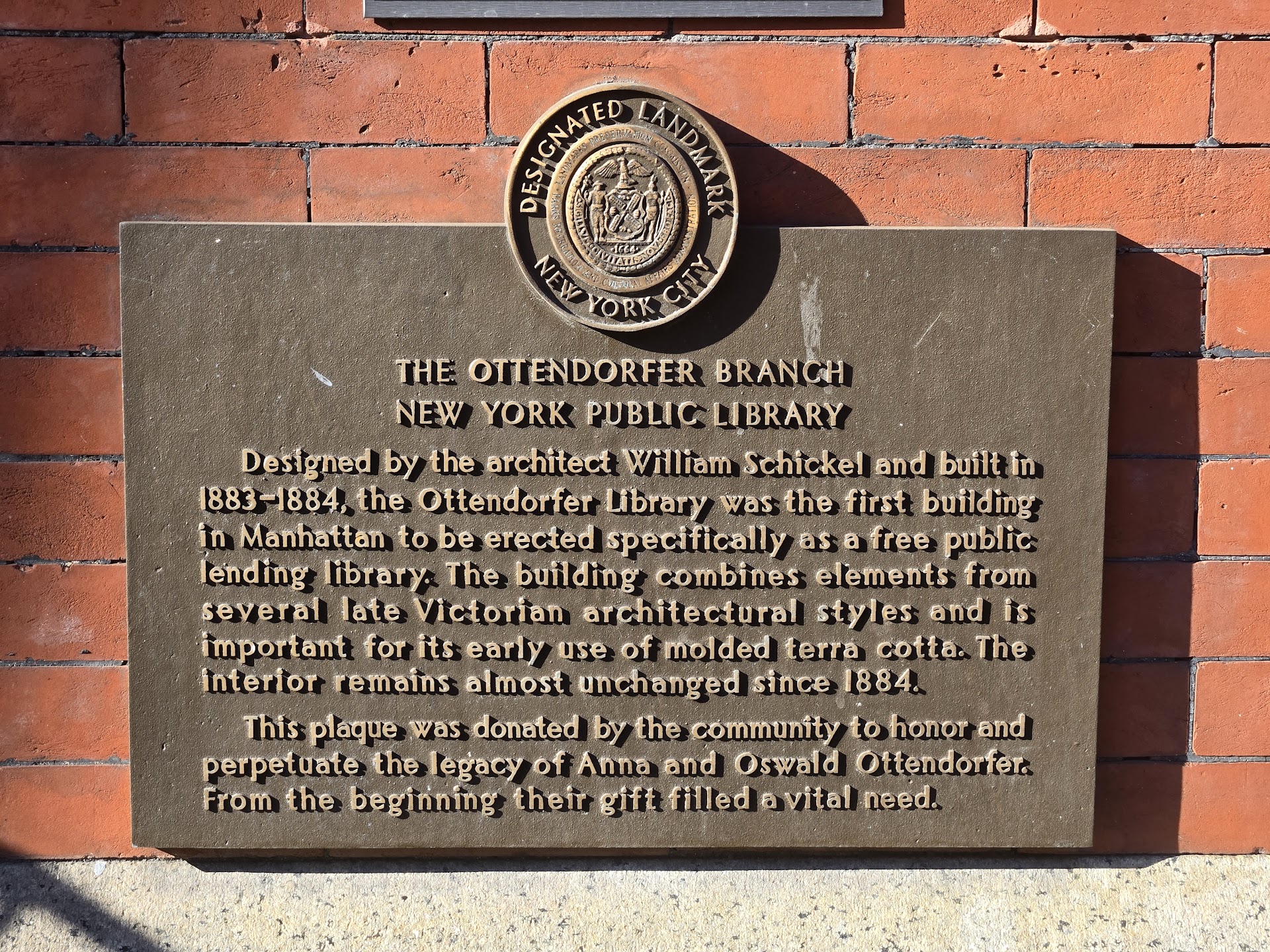Read moreIf you're on the lower east side, this is a pretty cool thing to see. Historic building was home to NYC's first lending library. Later it became a dispensary. The terra cotta molding around the doors and windows is fantastic. Hard to believe it has survived in such great shape. On 2nd Ave between St. Mark's and 9th St on the edge of Alphabet City. Fun neighborhood - mixture of gentrified and definitely not. Next door . . . Otto's Tacos....