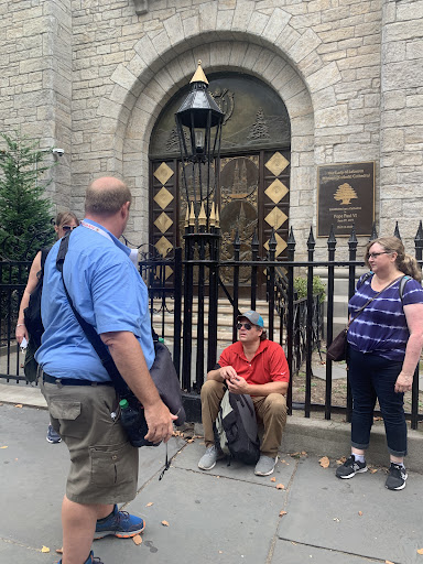 the church originally housed the “church of the pilgrims” in 1846. The Lebanese and Syrian used to live in the area where the World Trade Center was built– that area used to be called “Little Syria” – when that area was built up (aka gentrification) they relocated to Brooklyn Heights 1900s. Today they live near Atlantic Avenue. The church doors were from a ship that was going to serve in WWII. There are also parts from World Fair 1939 built into the structure. Our family came here on a tour with NY Adventures - HIGHLY recommend their tours -...
