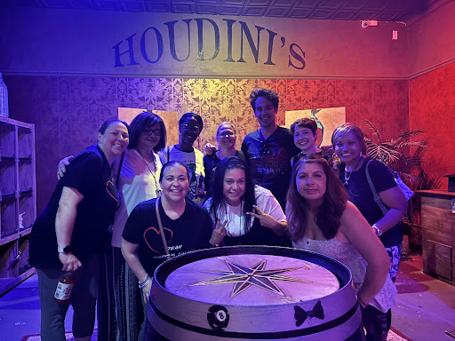 Houdini's Workshop - Group of 4 Marketed as their hardest room, Houdini's Workshop did not disappoint! The puzzles are interactive and you do need a group of 4 because there are a lot of tasks to do that can be done simultaneously. While we still had fun in the room, we liked this less than Pirates and Gotham because the puzzles were not "good" challenging. A majority of the puzzles were fine, but there were a few red herrings, and it was hard to tell which clue unlocked which lock. To me, a well designed room gives you a subtle hint as to where to look, especially if there is a lot of stimuli. Priscilla helped us through this room.