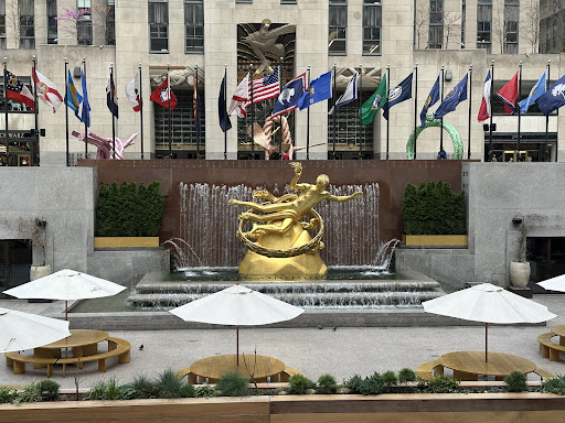 Read moreThe Prometheus statue at Rockefeller Center is a stunning piece of art that captures the essence of Greek mythology in the heart of New York City. Nestled above the famous ice skating rink, Prometheus, with his golden sheen and dynamic pose, adds a touch of grandeur to the bustling plaza. The sculpture is beautifully detailed, and its vibrant gold color shines brilliantly, especially when...