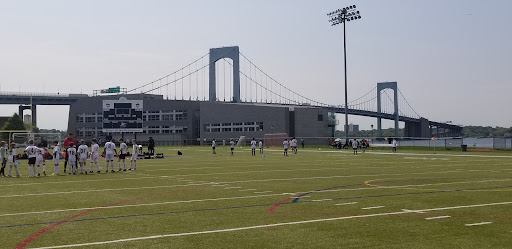 Very good turf Marked up for football which is not that great for soccer Unfortunately only cheap sagging fold-up goals for youth soccer Clean bathrooms in nearby athletic center Throngs Neck bridge nearby, other bridge and incoming planes to La Guardia in background Windy because of exposed location surrounded by water Large stands Good floodlights Bottom line: college quality sports field with good turf in a...