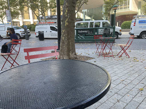 Read moreLovely little square off Lincoln Center and Century 21 department store with movable seating and tables, also used as a farmer's market on Saturdays. Lincoln Center Business Improvement District has a stand with tourist information about the area and a staff member to provide info. Good place to sit and eat your lunch/dinner Halal meal from the nearby Halal cart in front of Century 21. No free wifi unless you can 'catch'' the wifi signal from the subway station - this could change, so confirm in...