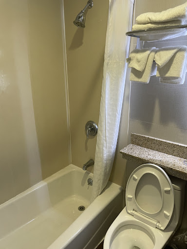 My husband and I went to this hotel on Saturday. We reserved our room last minute because we were looking for other hotels, but to no avail. We spent 1 night there and it wasn’t that bad. The guy we met behind the counter was pretty tall. He’s kind and friendly. He made sure we were comfortable. He provided us with what we needed. Our problem was just the bedsheets and the floors. The bedsheets were all dirty and stained. They had brown spots on them and holes. I was shocked. My husband immediately said it has to go. I went and asked for new bedsheets and pillowcases. I’m surprised he didn’t have someone change them for us. He just gave it to us and said to change them. Even the ones we replaced had holes, but at least they were clean. Honestly they can do better. My other issue was the smoking. All the other rooms had people smoking and it caused the fire alarm to go off. Talk about a long night🙄. The bathroom, let’s talk about it. The bathroom was clean. Not SUPER DUPER clean, but it was clean to my liking. The toilet was clean, the sink was clean and the tub too. I just need for hotels to invest in bath mats. Put them on the ground to prevent water spills everywhere. My other issue was the room floor. It was slippery and I almost busted my ssa 🤣thank God my husband had an extra pair of slippers. The room smelt like bleach. I wanted to keep the door open for a while but I knew I couldn’t. The AC is so good. It gets cold in the room very quickly so we did a lot of switching on and off. They should change the TV in there. Imagine not having YouTube or anything on the TV. The TV has only channels which were boring as well. The mini fridge was very useful. I like that. Honestly do I recommend? Yes, but not for a first time. I give EVERYTHING a 6/10....