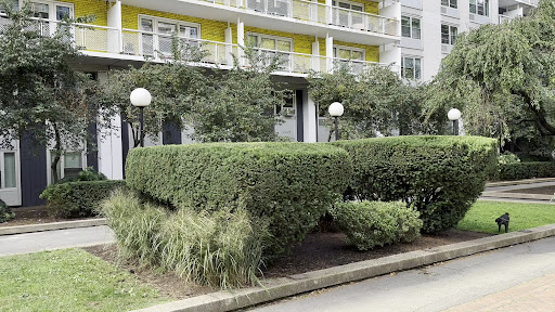 Situated in the middle of Washington Square Village, the project was constructed in 1958. Hideo Sasaki, a professor and the chairman of the Department of Landscape Architecture of the Harvard Graduate School of Design, designed the gardens over the parking garage.