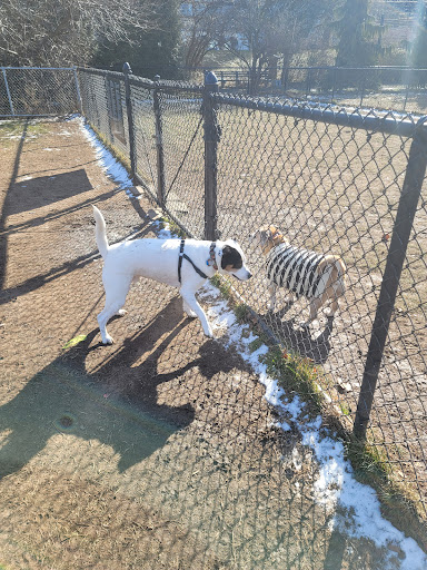 This is a great park to go for a walk, but the dog run itself is in need of lots of work. If this weren't the only (publicly known) dog run in the area I'm sure most people would choose to go elsewhere. For starters the dog run gets very muddy after it rains. The place gets so much dog traffic that grass has trouble growing so even during the summer the place is mostly dirt (or mud!). Secondly, there are no bathrooms in the park. The water fountains are shut off for the winter so from October to April you will have to bring a water bottle for your dog. The fences are pretty low so if you're dog is a jumper or climber you need to keep an eye out. Also puppies and other small dogs can easily crawl under the fences. And the run isn't large enough for greyhounds and similar breeds to run full speed, for most other dogs though the large section is big enough for them to sprint in.