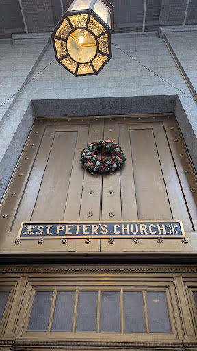 It is dwarfed by its shiny new neighbor, One World Trade Center. But St. Peter’s, built in 1834, is hard to find for another reason. Its temple-like facade, with a stone pediment and columns, is so stately that from across the street I almost mistook it for a colonial seat of legislature like Federal Hall on Wall Street. But its interior, with an altar of gilded pilasters and crystal chandeliers and redolent of incense, displayed a subtle, ornate beauty. I arrived on a Wednesday afternoon just as daily Mass was ending; office workers on their breaks darted for the doors, while tourists shuffled out slowly, admiring the stained-glass windows.