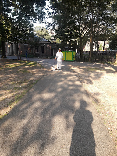 One word: Dirty! So many people crowd this park in the summer that it is impossible to keep it clean without resident's help. Too many BBQs, not enough garbage bags. Lots of dog owners (including myself) use the park so expect to see dogs off the leash from time to time. (Watch out for leftover food in the grass!) Unfortunely, what ever tennis program they were planning never came into fruition. The newly paved tennis courts are littered with trash. It now doubles as a dog run as it is the only fenced in area to safely unleash and train your dogs wIthout interruption. To it's credit, the sprinklers in the kid's playground area are a great way to cool off and let your children run around safely as it is fenced off from the rest of the park. (No dogs allowed.) The kid's playground is well shaded and the mist from the sprinklers is a plus for adults wanting to stay cool while keeping their young ones insight. Not a place to be after dark...rats.
