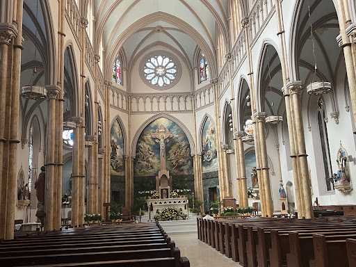 Lovely church. I came here for the first time during the celebration of the feast day of St. John the Baptist. I went inside and saw someone talking to a lady behind a window, which is where you can buy Catholic items (candles, rosaries, prayer cards, books, statues etc...) I went in to pray then asked someone for information about candles and was directed to a monk or brother who happened to be standing by. He was very polite, informative and soft-spoken. Actually, all of the people there were older and friendly. I learned that the church would be celebrating the feast of Our Lady of Perpetual Help (Succor) and would have a procession on June 26th. The service was from 6:30pm to 8:15pm and refreshments were served afterward. This was a very nice service to attend...