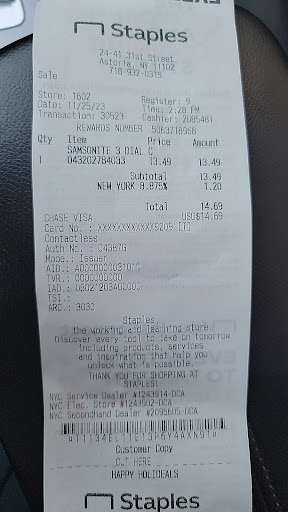Ā Ā Ā Read moreWhy are there 5 people in the copy center and only 1 person / 1 station for the return center? When I showed up today to return my packages, there were 3 people ahead of me. 5 minutes pass by, 2 people ahead of me. Okay , I guess scanning takes some time. It would be great if they had two computers. But thatās not the reason Iām writing this review. At a certain point, the associate today had to grab someone from the copy center to help him pack and scan a bunch of boxes , because it seems he hasnāt been able to address the products piling up around him to tend to the constant line. They took 15 minutes to address the backed up products and the line quickly grew to 10-12 people, spanning across the width of the store. I was there 25 minutes total to return a few packages which Iād preprinted labels to speed up the process. My return receipt was handed to me at the end - ā15% off your staples order for using our return centerā. What a joke. I ran out of there so fast. The people in line were literally laughing at how ridiculous this was. Going back to my original question; why do you have 4-5 people in copy center and 1 person on the return side? I donāt know how this staples is run but I canāt believe thereās a regional manager or district supervisor that somehow approved this messy and unevenly distributed use of resources. Why not have 2-3 computers in the return center and allow copy center employees to flex on/off from return center/copy center? Please address this disaster...