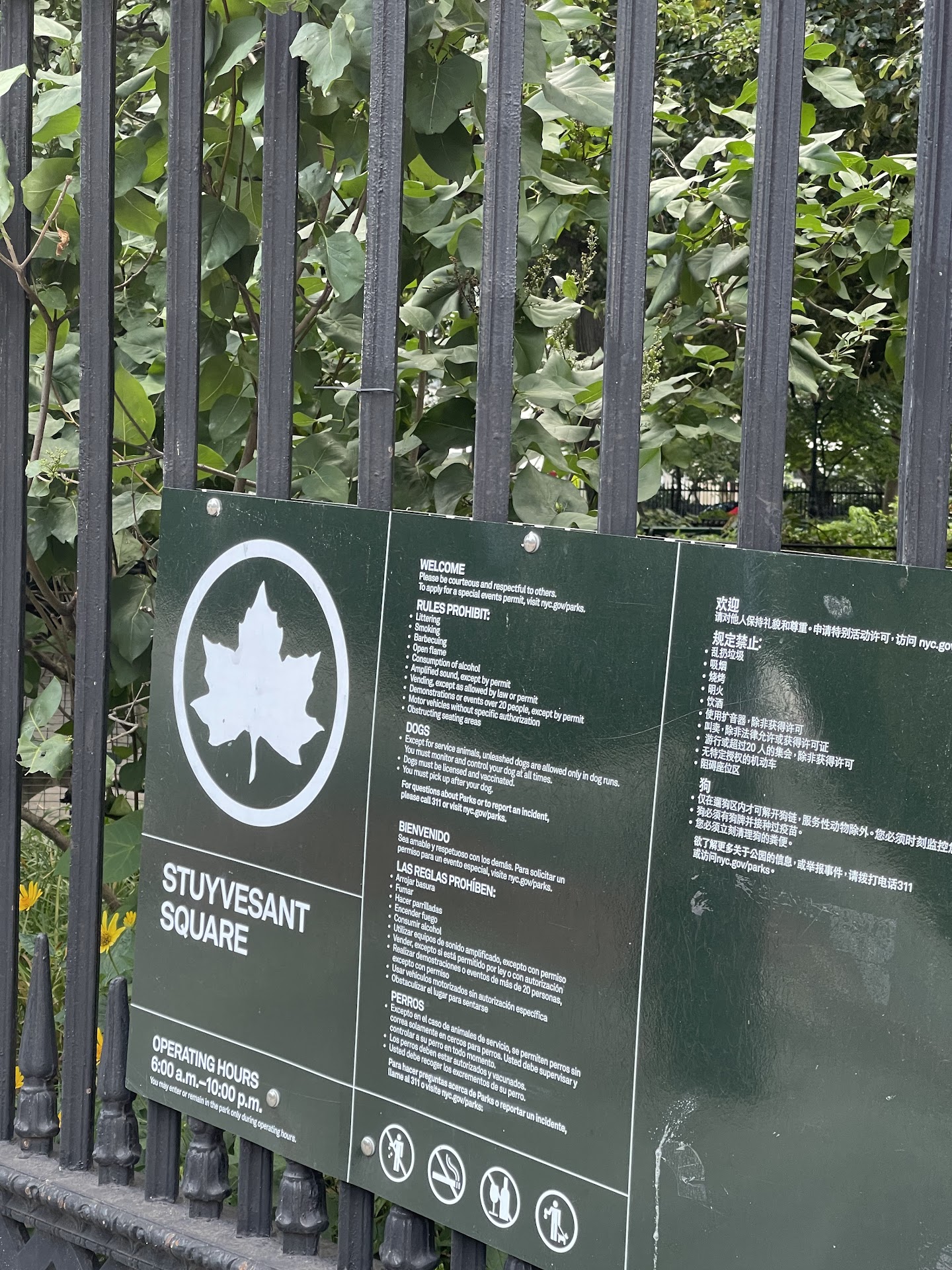 perfect for hanging out outside on warm days, eating lunch outside, sipping on coffee, getting lost in the pages of a book, or you just want the semblance of being in nature in NYC's concrete jungle. Stuyvesant Square is a frequent post-running cool-down spot for me and makes for a great place to park yourself in the early evening and chill.