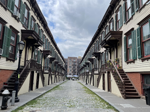 Read moreIt was really fun to see this unique New York street. Getting there is a very intentional since it is very peacefully tucked away in an historic district of Washington Heights. The street looks like it's from another time or another city, or maybe both. The uniformity of the homes is quaint, and the details are cute, from the house numbers painted on the transoms and the little doors to the subunits at street level. Cars can only enter the street from one end, and at the other is a small stairway to St....