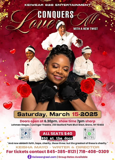 We went to see Love Conquers All, an off-Broadway play by a new playwright. It was a Christian play with a lot of potential for growth, and I believe it will continue to develop. The theater was the perfect space to host it.