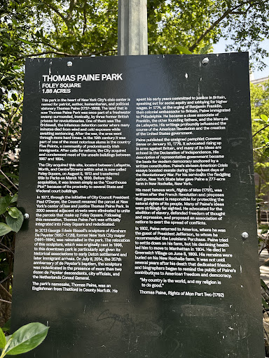 Read moreThomas Paine Park es un lugar encantador y acogedor que brinda un alivio bienvenido después de un largo paseo desde DUMBO por el Puente de Brooklyn hasta el Barrio Chino. Aunque no es muy grande, el parque ofrece un espacio tranquilo para descansar y relajarse.