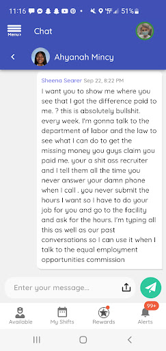 This morning, I reached out to all shifts regarding my pay, and the suspension. I was told “this facility pays weekly, they submit timesheets on tuesdays.” Nowhere is this information listed regarding his facility on their app. I also asked why my account was suspended and “A” the person who answered the phone was extremely disrespectful to me as If he was bothered by me needing help or asking questions. He told me I called out for my shifts, I’ve never had a shift to call out for. I had to set up my own shifts in order to work because they never ever confirm or cancel your shifts, they’ll let you get to a facility and that’s it. I asked him if they’re was a supervisor I could speak to, and he said “no there isn’t at this time”, I then asked if they were located in Newark because sometimes when you talk to a person face to face you get different results, and he advised they don’t service anyone on site. He then stated “your account manager will reach out to you with a decision,” AND HUNG UP ON ME. Disconnected the call. So not only did I not get paid for breaking my back this weekend, working short, have over 17 residents by myself each shift, I NEVER GOT PAID FOR IT AND MY ACCOUNT IS SUSPENDED FOR NO REASON.
