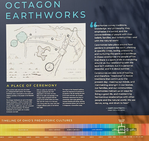 Would have been 5 stars if you could actually see it better. This huge, fascinating 2000 year old native American earthworks (a huge circular earth berm, a causeway, and an octagonal series of berms and small mounds) is currently owned by a golf course with the course set up in amongst the earthworks. Yes, the golf course owners have preserved much of this monument, but clearly they have modified parts of it, like where the circular earth wall was breached to allow golf carts to access the course. There is a viewing platform that lets you look into the golf course/earth work grounds, and there is a public accessible asphalt path skirting 180 degrees of the circular earth wall (skirts the club house). Only club members were allowed onto the course. Staff were courteous when asked about where the path around the circle was. They verified it was OK to walk the short path. No path circumnavigates the entire compound. This place, and the nearby circle mound are...