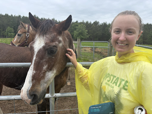 The property is very quiet. It is about 8 miles from I26 so no road noise. They are off a very quiet road and have lots of property so truly tranquil. It has numerous animals who are very well behaved (only the rooster made noise and he is beautiful and social and hilarious when he runs… I guess he doesn’t like his picture taken!) They are making a fruit orchard so plenty of trees.