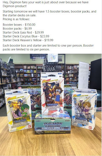 Earlier today we stopped in, as soon as we walked in, an employee over heard us talking about D&D and told us a funny story about their own D&D experience. I walked to the back and asked another employee about a FAB game mat and if they were for sale. They said they don't sell them and are given away during a game tournaments. Another employee over heard our conversation and basically reiterated FAB doesn't sell their game mats and only gives them away. They then said they will be right back and came back and handed me a game mat from the back that they had used during a tournament.