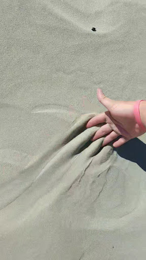 It's a sandy beach. Aaaaand that's about it There are no agates. At all. I doubt there ever were. I have no idea why it's named that. It's a long sandy beach. That lone, tiny black rock does not a beach of agates make. 😆 It is a popular place for surfing. The waves were slightly crowded with people surfing but mostly body boarding. The beach itself was not crowded with only a handful of people scattered about. It was very clean, but no restrooms, garbages or much parking. Several dogs were running around unleashed and there were BIG piles of poo in places. Im not a dog on the beach unleashed fan, but I had no issue with them at all. There is enough room to spread out. Not at all wheelchair accessible, and not a place to pack down a cooler or stroller. A large cable on the way down to the trailhead means you would need to lift everything up and over and then maneuver down a bulky, fairly long staircase. You can easily manage the trail with 4+ year old though. The steps down are wide, seem well maintained and are on slight grade. There is a warm fresh water stream at the bottom of the stairs that is an absolutely perfect place for small children to play in safely. I would make a special trip for small children to play there. The dogs were far away at the shore, no waves, the water was just over ankle high on an adult and it's perfect sand castle area.