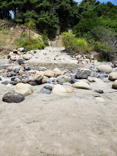 Read moreOkay so I want to start off with a few warnings! Do not go down to this beach if you do not have shoes that are acceptable to be drenched. Even when the tide is low it's almost impossible to go anywhere on the beach without having to pass through enough sea water to ruin regular shoes. Even on sunny days when it is hot out we have had issues with the sand fleas... The little buggers love to jump on the kids feet and bite them. I would highly recommend using water socks. There are definitely still agates to be found! You will have to dig quite a lot especially where the water dredges. My kids found too small ones while we were there. There is a little changing room and bathroom at the top where you park. Also a foot washing station that came in handy. The views from halfway down to see the beach are absolutely beautiful. The steps going down are fairly easy and there are guardrails to hold on to. I think the only downside is that at the bottom of the steps there is a pretty sharp drop off into dry sand. It can make it a little frustrating and difficult to get back up when you're leaving. The water was actually warm in many places and most of the people there are here for surfing or playing...