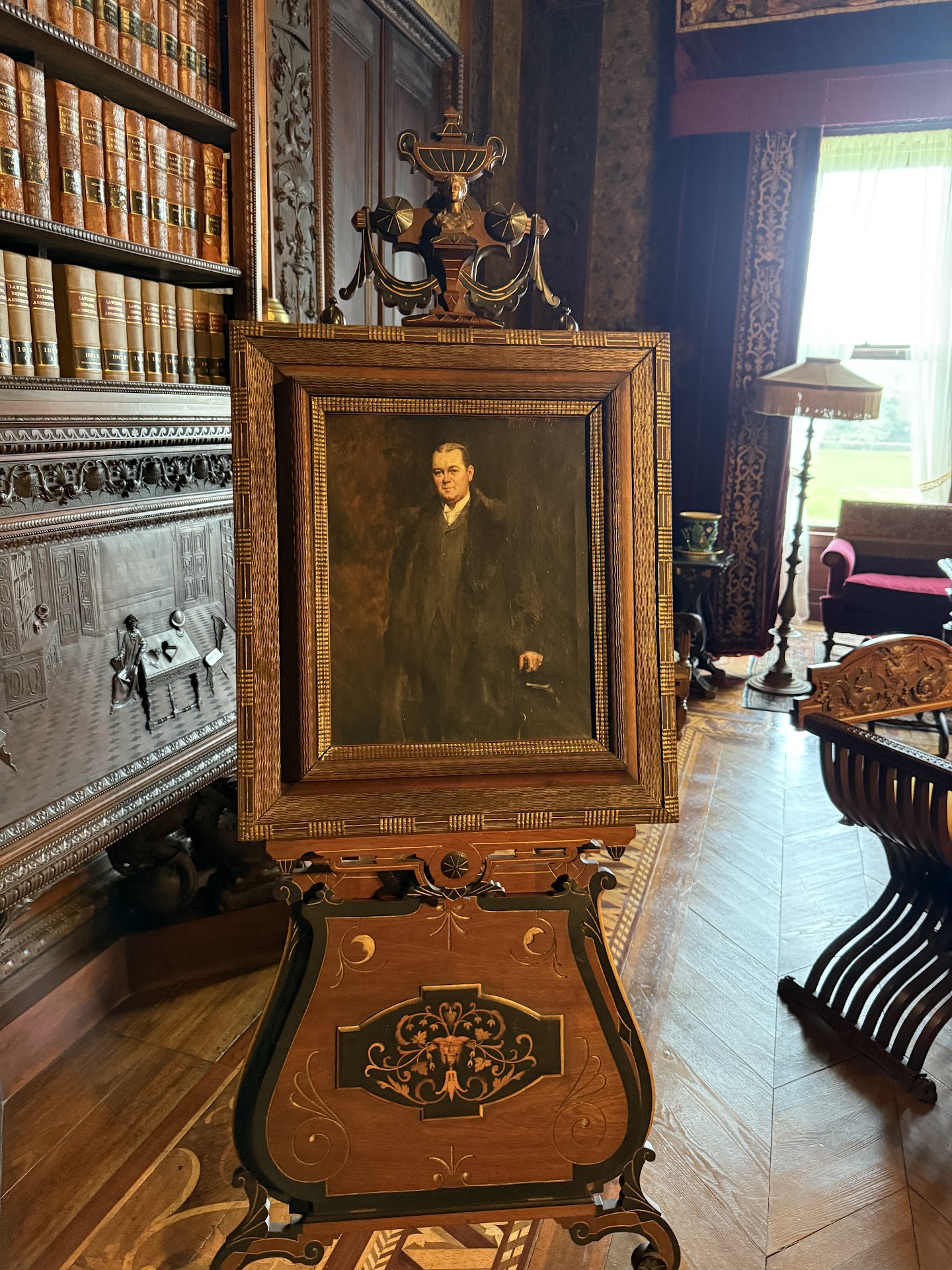 This mansion was owned by the Wetmore family, with Governor George Peabody Wetmore being its most prominent resident. One of the things that struck me most during my visit was how intellectually rich the house felt. Unlike some of the other Newport mansions that emphasize opulence and spectacle, Chateau-sur-Mer exudes a more introspective grandeur. The interiors feature extensive wood paneling, built-in bookcases, and carefully curated curios, many of which are thoughtfully displayed behind glass. Compared to a place like Marble House, which is stunning but more focused on presentation, Chateau-sur-Mer feels like the home of people who valued education, culture, and heritage.