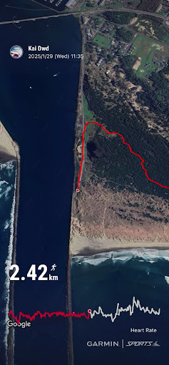 Previously, parked at the Day use parking lot, climbed over the sand dunes, and headed to the beach. This time, I took the Old South Jetty Trail through Yaquina Bay State Park, walked across the beach to return. If you have time, this is a trail worth exploring. As you walk through the forest for a while, you can get a view of the Yaquina Bay Bridge and walk back across a quiet sandy beach. Walking with three very excited dogs for 2.9 miles, I could feel their absolute trust...