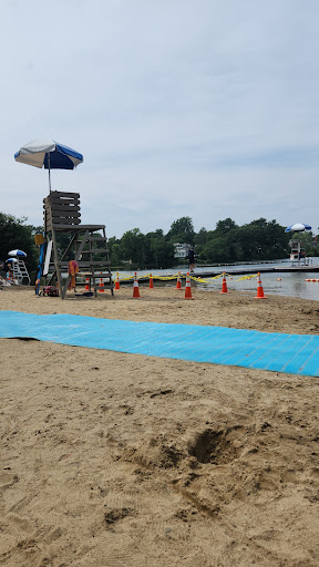 I've been here twice with my toddler, but I feel like this place is run by a few teenagers who enjoying yelling at people. However, they seem a bit more lenient on allowing snacking on the beach even though that's against their extensive list of rules, or perhaps they are distracted. The beach is tiny, at best, so when I went there today, I was surprised to see the entire section in front of the lifeguard stand blocked off (see photo) That's about 30% of the 'beach' area that is cutoff bc it's a very "popular" spot to hang out for people. Mind you, Newton residents already pay $5 for this place that has no showers and not a proper place to change clothes bc the bathroom door doesn't exist. You need to wiggle yourself away from a toilet to put on back civilian clothes. Perhaps there's a secret room that charges another fee to change clothes. I only come here for the access to the water but if I want sand, I'd just stick my toddler in a wheelbarrow with some playsand and call it...
