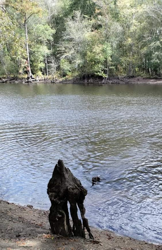 Griffins Bluff and Mill Hole are good trails. These can be accessed by the shelter with its own parking area. Rock gravel, some wooden walkways, a pier, swampy type views, as well as views of the river. Easy. Semi-shaded. Campsites are on Mill Hole. These loop you back to the shelter area.