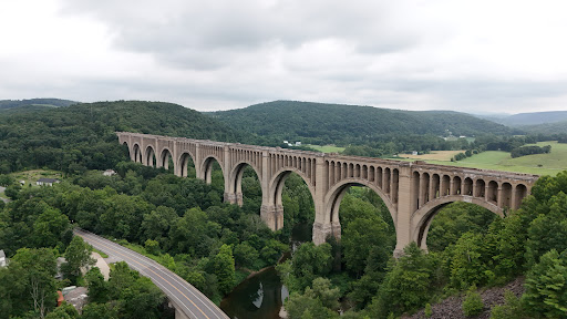 The Tunkhannock Creek Viaduct, also known as the Nicholson Bridge, is a monumental concrete deck arch bridge located in Nicholson, Wyoming County, Pennsylvania. Spanning Tunkhannock Creek, it is a must-see landmark!