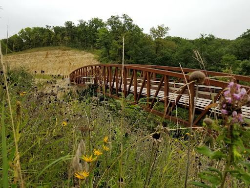 Unique and beautiful along the river. Listening to the birds on the river in the morning is wonderful (bring binoculars). Located up on the bluffs, its still at a distance and few (or none?) trails to riverside. For bikers: there is some elevation and slopes. They have both paved trail for bikes (more than 4 miles) and walking trails in the prairie and woods. Bathrooms are nearby and plenty of pickenick tables, fire pits, grills, even tools and tire pump for bikers. Free drinking water and I saw an electrical outlet at the picnic grounds. Bring your kids there's a large playground and volleyball area (careful along the bluffs, there are real cliffs) . The number of animals and birds I saw in just a couple hours was vast I saw pheasant, Turkey, hawks, geese, woodpeckers, and many more variety...