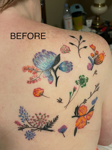 My tattoo is exactly what I wanted and I've already got another appointment set up with Laura to fix up an older tattoo that I have. I don't plan on a lot more tattoos, but anytime I decide I need another one, Laura is definitely who I'm going to and she's going to be who I suggest people go visit! Thank you, Laura, I couldn't be happier with my custom...