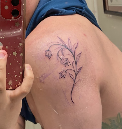 This was the first tattoo I've ever cried after getting. I went back for a touch up in about another month and she tried to fix some stuff but it's still not what I wanted. And I'm always scared with tattoos and haircuts if you tell the artist they did a bad job they will get mad and purposely mess it up more, so I just lied and said it was fine and went on my way. When I get the money again I will go to another local artist and have it fixed.