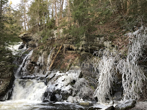 Read moreWell-trodden footpaths crossing footbridges on the descent towards Ginger Creek. Campbell Falls are just ten minutes hiking from the unpaved parking lot which fits about ten cars and offers two picnic tables next to one outhouse (with merciful distance between these!). The waterfall’s mist covers everything nearby, so be careful in freezing temperatures since everything around the base is covered in sheen ice. If you cross Ginger Creek, you can ascend to the ridge line along other, challenging trails. There are two markers delimiting the border between Massachusetts and Connecticut, though one of these...