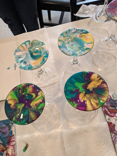 Read moreI love this new location! There are a number of terrific and talented resident artists whose work you can admire along with a rotating exhibit featuring artists from all over. I highly recommend taking a paint pour class with resident artist Deanna. She's a great teacher who makes sure everyone is completely satisfied with the art they've created. If you get a chance to do a wine glass dip class, you'll be super pleased with a custom set of wine glasses you can keep for yourself or give as a...